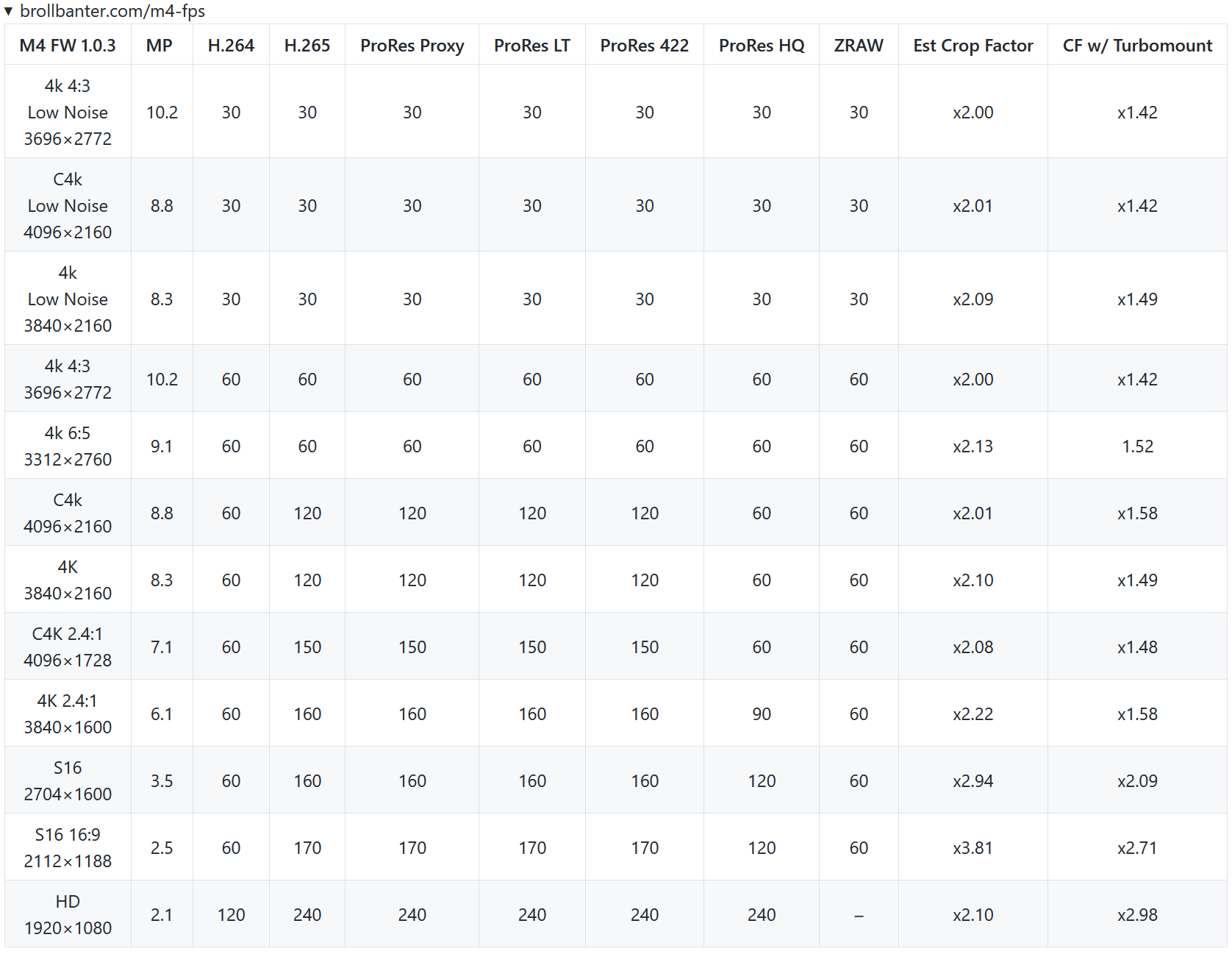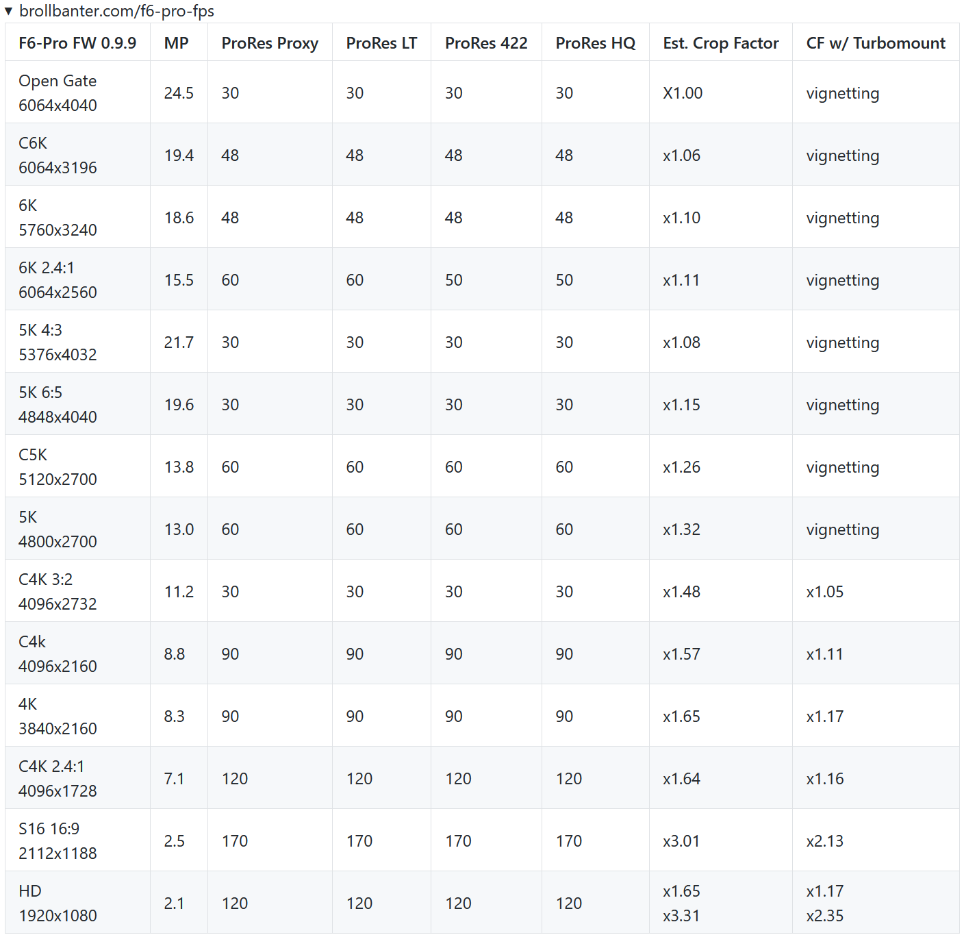 - ProRes C4k up to 50fps