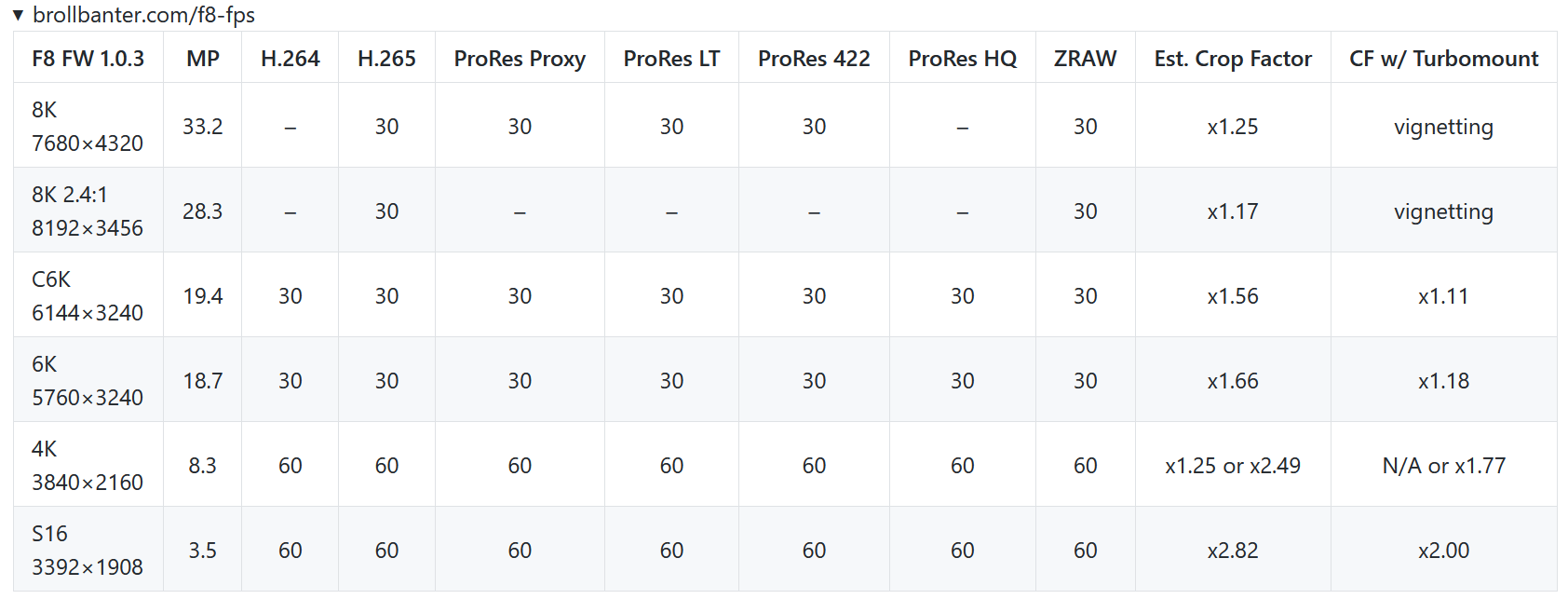 - All resolution and frame rate combinations now support ProRes 422 recording (except C8K 2.4:1)