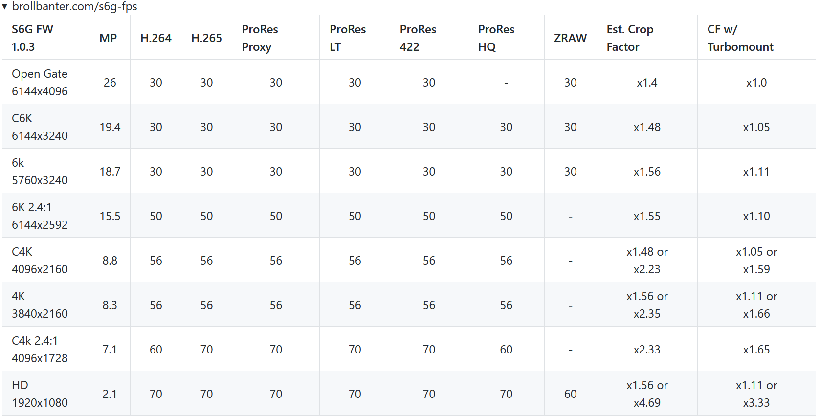 - Low jello mode prohibited (RAW over HDMI)